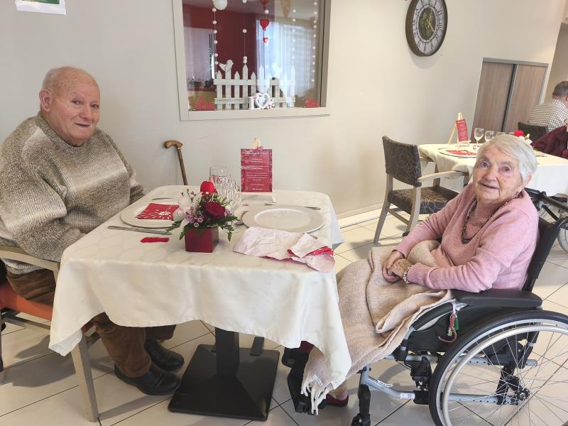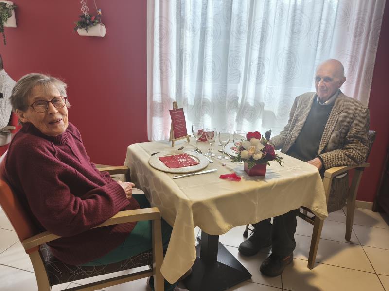 Le 14 février, journée de bonheur, de tendresse et de partage autour d'un repas pour nos résidents et leurs conjoints.