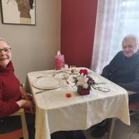 Publiée le 16/02/2026Le 14 février, journée de bonheur, de tendresse et de partage autour d'un repas pour nos résidents et leurs conjoints. Au menu: Pétillants avec ses amuses bouches Saumon fumé sur ses blinis et sa crème d'aneth Paleron sauce bourguignonne accompagné d'un &e [...] Lire la suite