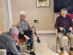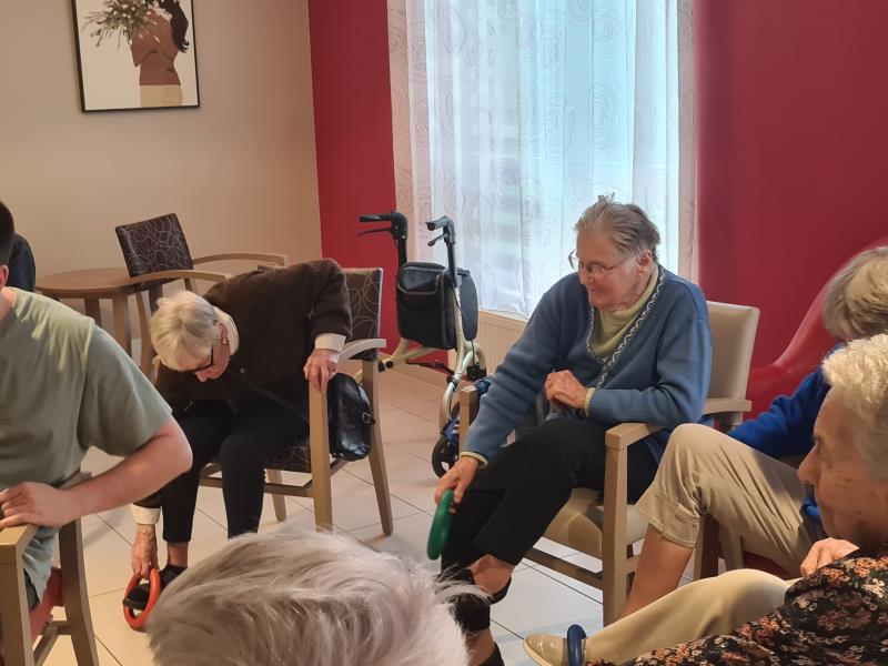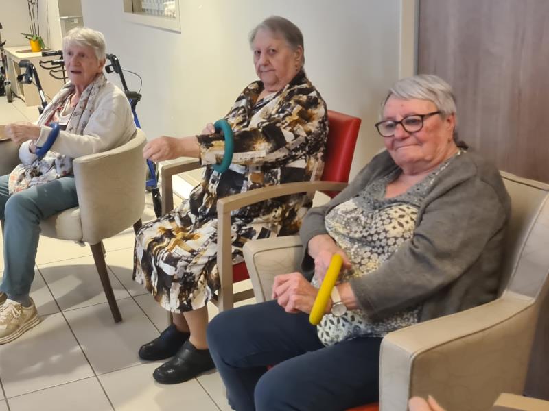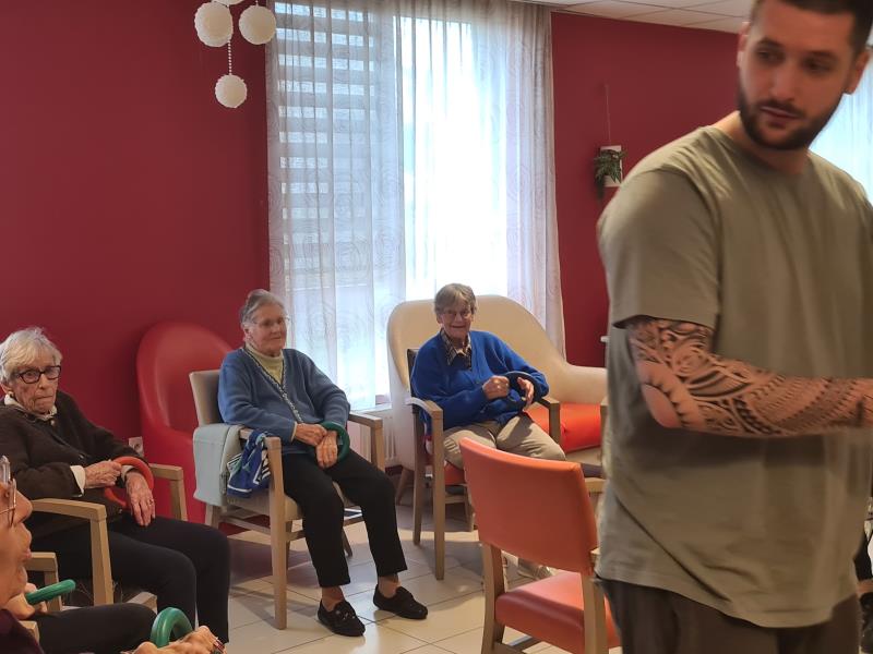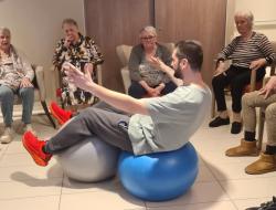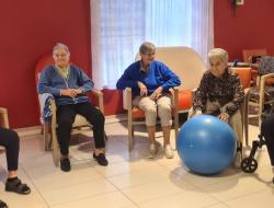 Le gros ballon de gym a permis de travailler l’équilibre et le gainage. Grâce à des exercices simples comme s’asseoir, se pencher ou rouler sur le ballon, les muscles profonds ont été sollicités, notamment les abdominaux et le dos.