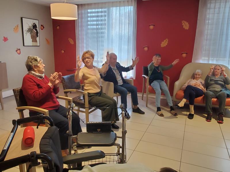 Les résidents étaient particulièrement motivés pour participer à la séance de danse animée par Marie-Lou.