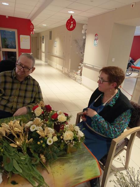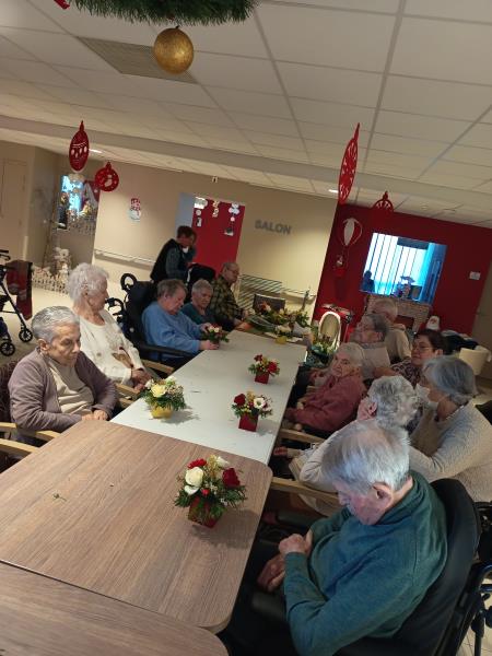À l’occasion du réveillon de Noël, les résidents ont participé avec plaisir à la préparation de jolies compositions florales destinées à embellir les tables de fête.